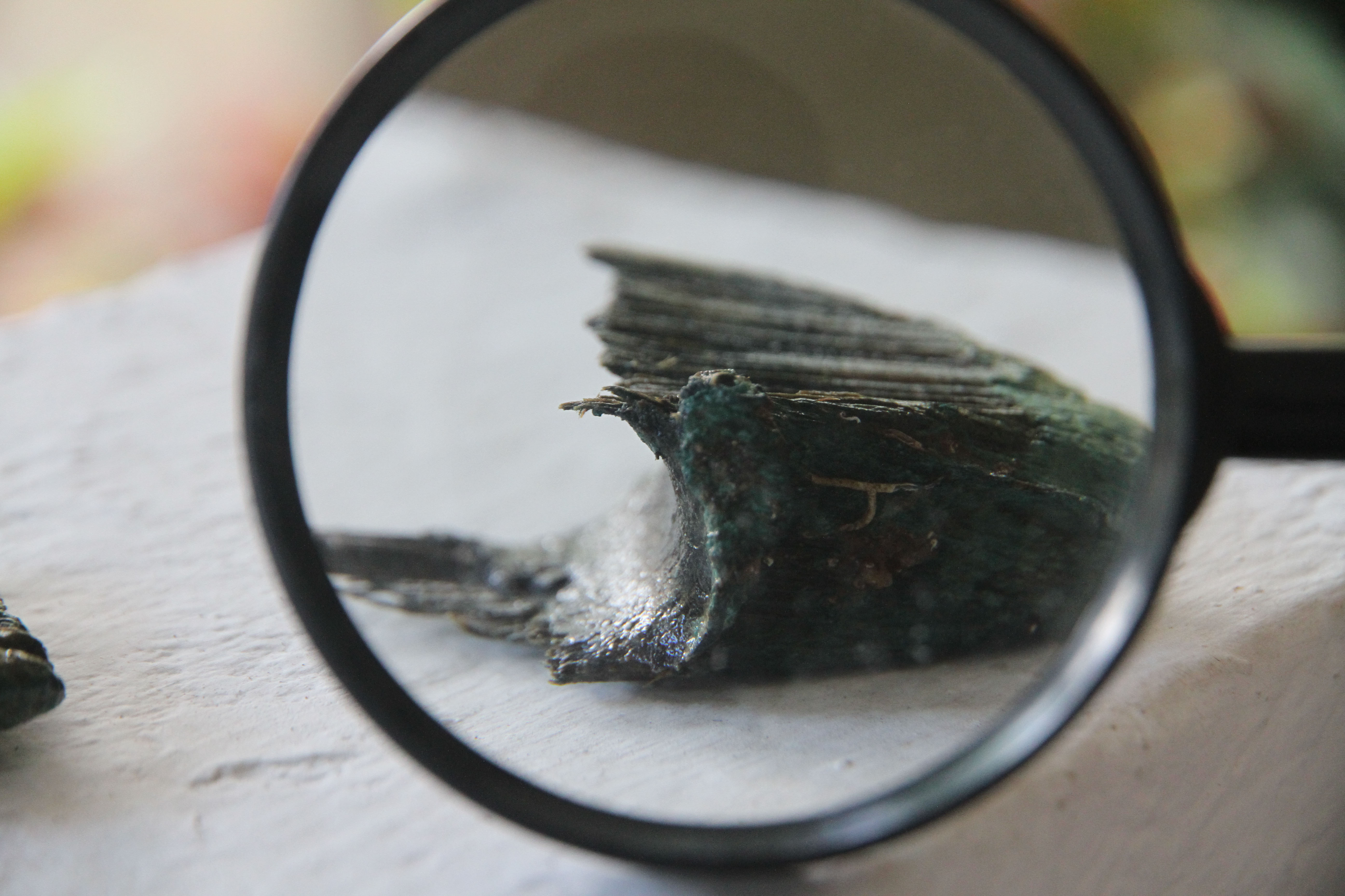 Checking the wood of a wreck that once contained a bronze nail. (c) UNESCO/Nieto