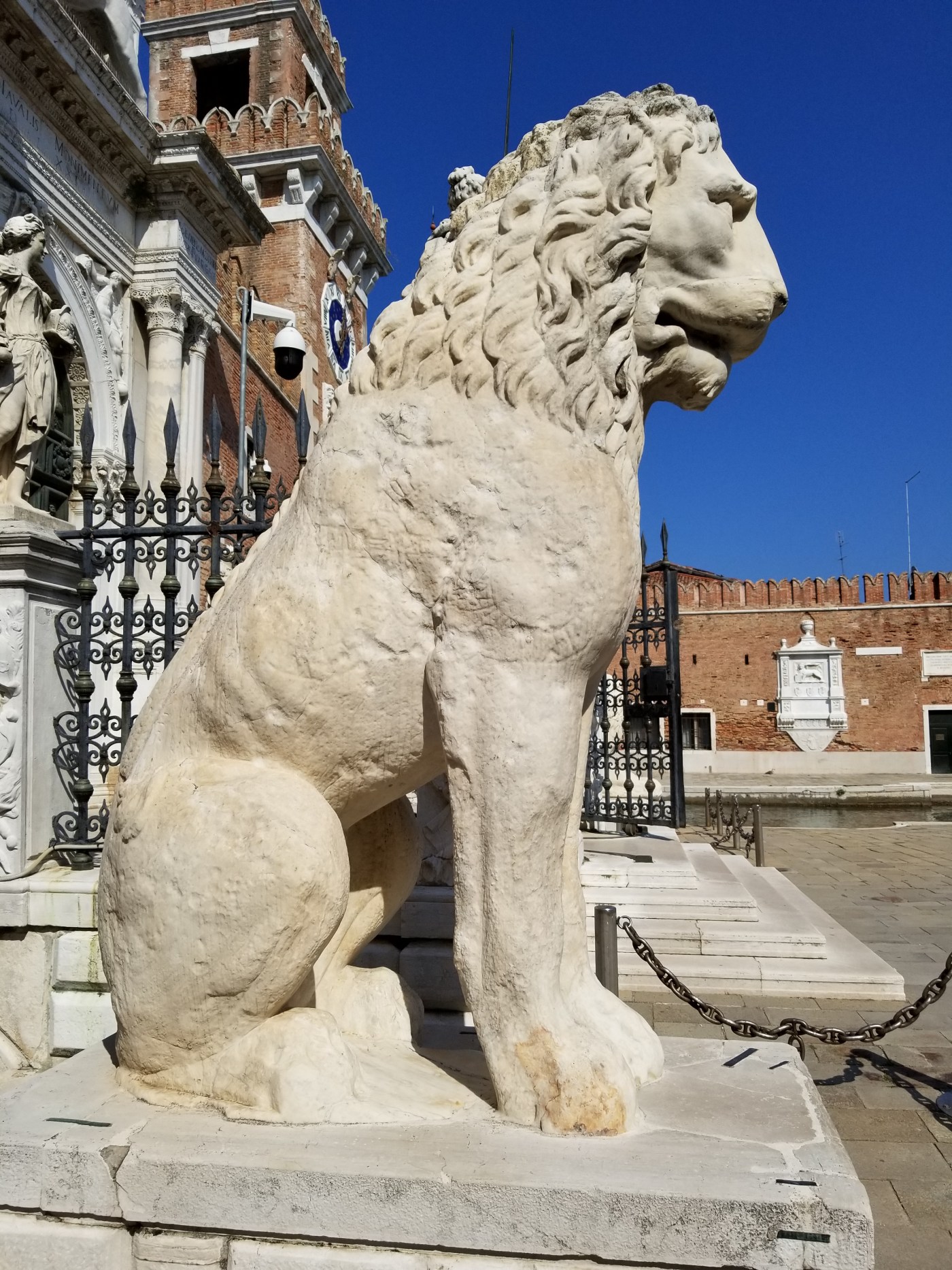The tourists who pass today in Venice the arsenal of the former Venetian armed forces see there a series of four stone lion statues. Hardly any of them will be surprised at their presence, given that the winged lion of St Mark is the heraldic animal of the city.