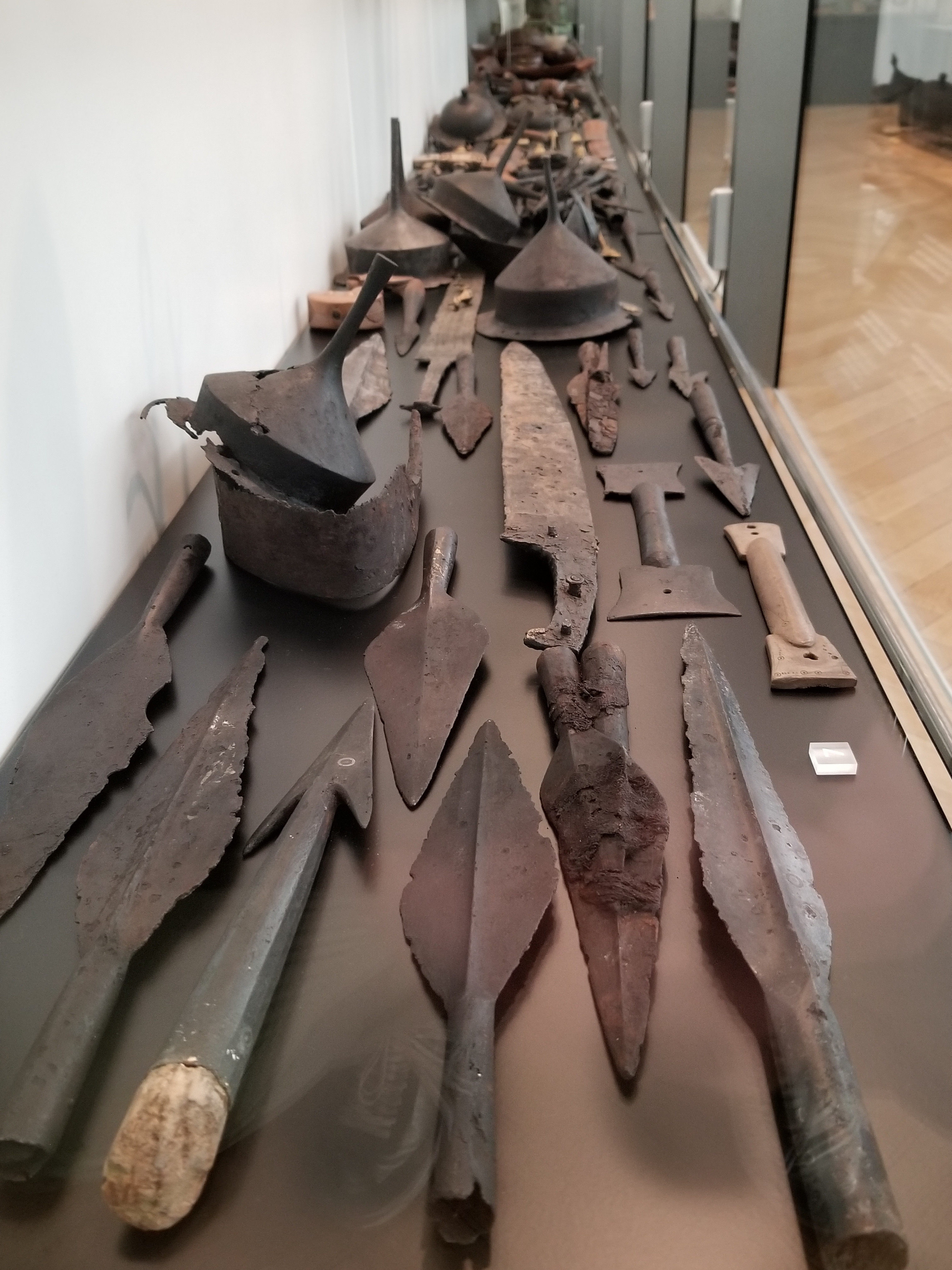 Other objects that might have been sacrificed during or after a royal coronation were also found in the bog, such as weapons, clothing, horse harnesses, luren (musical instruments), and the cauldron of Gundestrup, many of which are of great value.