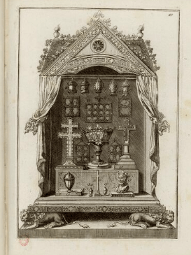 Illustration: an 18th century artistic replica of the Grande Châsse containing twenty relics, eighteen of which are from Constantinople. Two relics of the Virgin Mary were added and three relics from Constantinople were placed in the basement of the Sainte-Chapelle.
