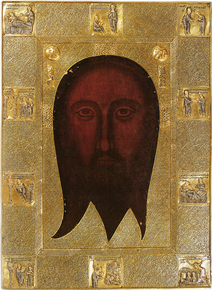 According to Christian Orthodox tradition, the image of Edessa was a sacred relic consisting of a rectangular cloth on which a miraculous image of the face of Jesus had been imprinted. The Savior is said to have wiped his sweat-covered face with it, and in the process God is said to have burned his image into the textile.