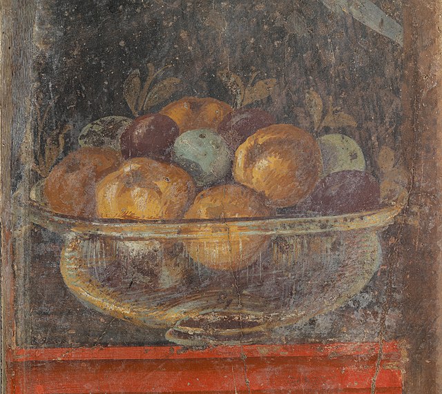 In the excavation of the Vesuvian area, which was sealed by ash and mud, numerous agricultural remains were found. Scholars also found dried fruit, such as figs, dates, and plums. Moreover, they discovered typically autumnal fruit, such as pomegranates in Oplontis, chestnuts, grapes, and walnuts.